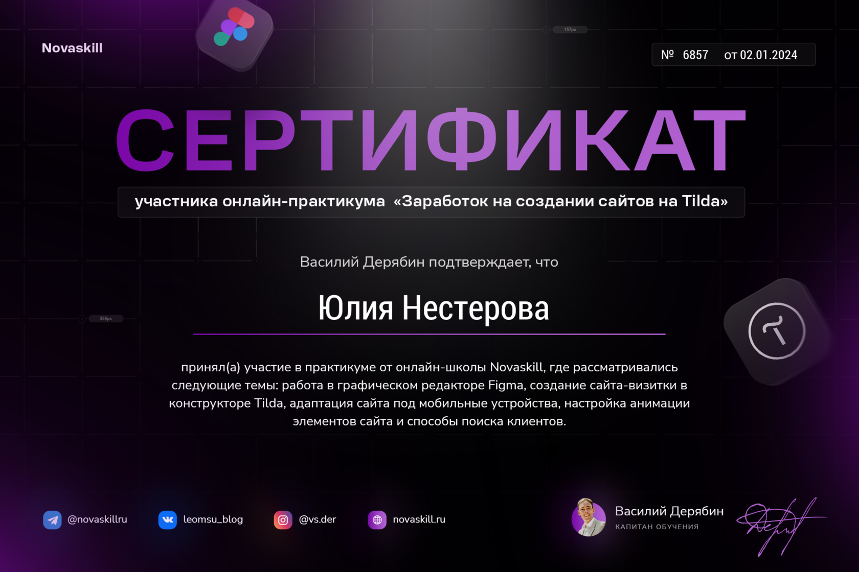 Хочу поблагодарить Юлию Нестерову за сайт который она сделала, мне нравится, Юля Очень творческий и светлый человек. Многие аспекты сайта обсуждали, учла всё мои пожелания, спокойно корректировала, предлагала свои идеи! Рекомендую с удовольствием. Юлечка, благодарю, успехов тебе!
